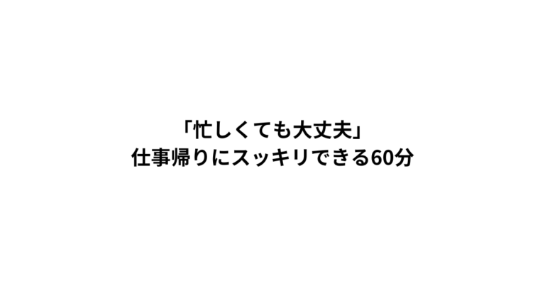 「忙しくても大丈夫」仕事帰りにスッキリできる60分