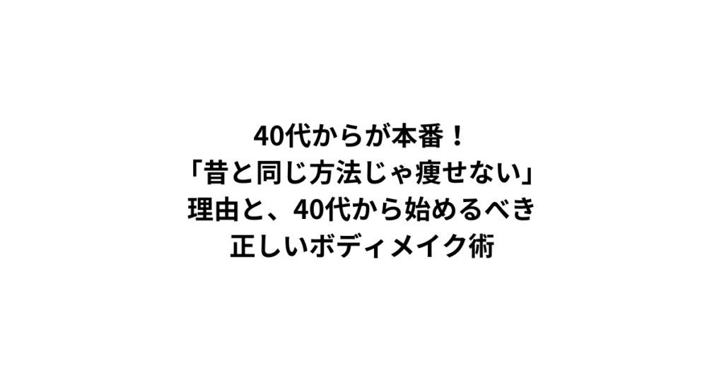 しかし、悲観する必要は全くありません。 40代は、これまでの知識をアップデートし、**「大人のための正しいボディメイク」**を始める絶好のタイミングです。