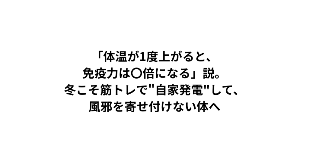 年末年始、仕事もプライベートも忙しい時期に寝込んでしまわないように。 今年は「防寒グッズ」にお金をかける代わりに、ご自身の「筋肉」に投資してみませんか?