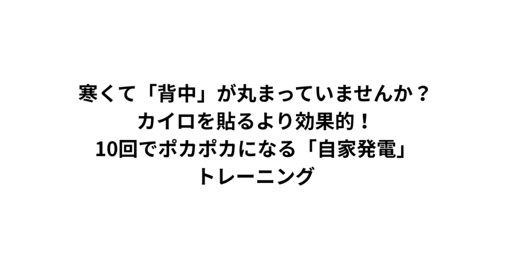 10回動かせば体は温まり、姿勢は良くなり、代謝も上がります。 この冬は、カイロに頼らず、自分の筋肉で寒さを跳ね返せる体を作りましょう!