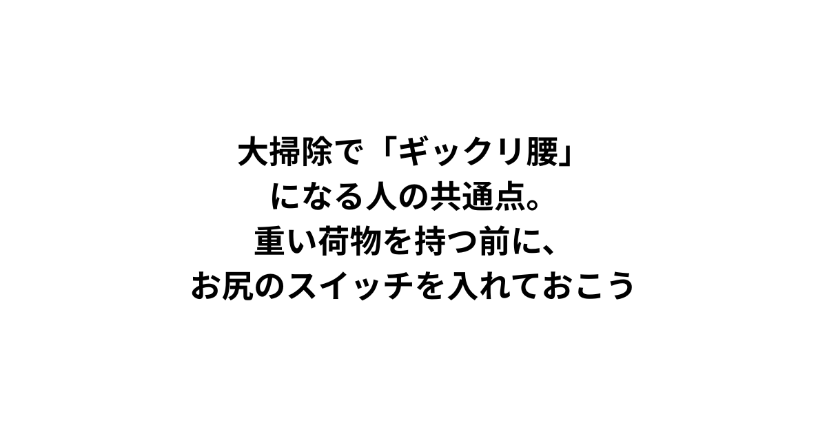 せっかくの年末年始を、激痛とともに布団の中で過ごすことだけは避けたいですよね。 今回は、ギックリ腰になる人の「共通点」と、それを防ぐために今すぐ入れるべき**「お尻のスイッチ」**についてお話しします。
