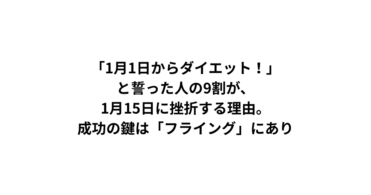 「1月1日からダイエット!」と誓った人の9割が、1月15日に挫折する理由。成功の鍵は「フライング」にあり
