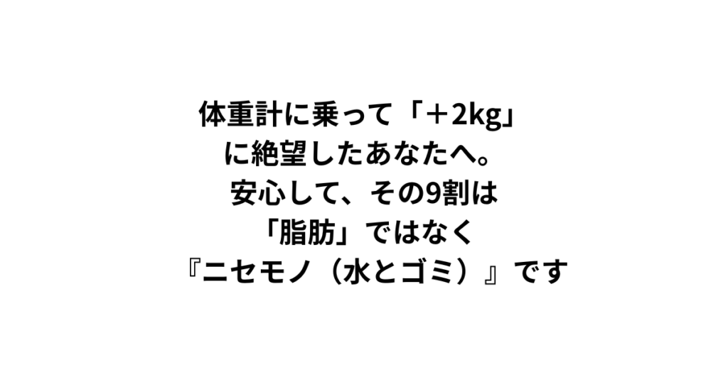 その増えた2kg、まだ「脂肪」ではありません。 今すぐ対処すれば、なかったことにできる**「ニセモノの脂肪」**なのです。